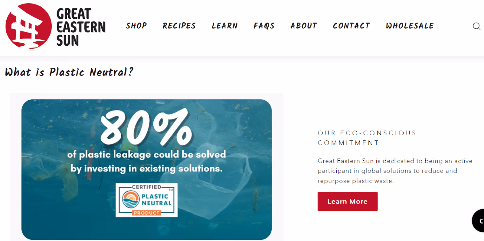 There’s a blog for customers to learn about Plastic Neutral on the Sunwink website, and the Plastic Neutral certification logo appears on Sunwink’s packaging.
