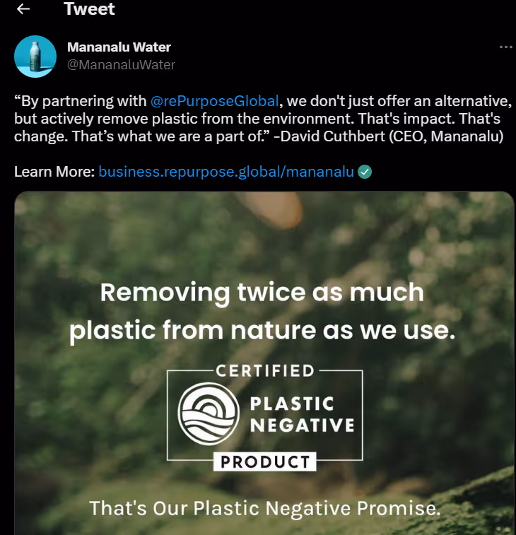 “Single-use plastic is bad for people and the planet. By partnering with rePurpose Global, we don't just offer an alternative, but actively remove plastic from the environment. That's impact. That's change. That’s what we are a part of.” (David Cuthbert - CEO, Mananalu)