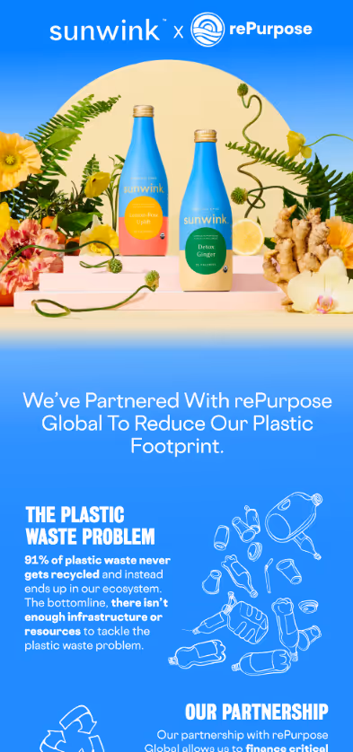 Sunwink has a commitment to use 100% recyclable or recycled packaging by 2025. Plastic Neutrality with rePurpose Global allows the brand to take action on plastic waste while this journey is underway.