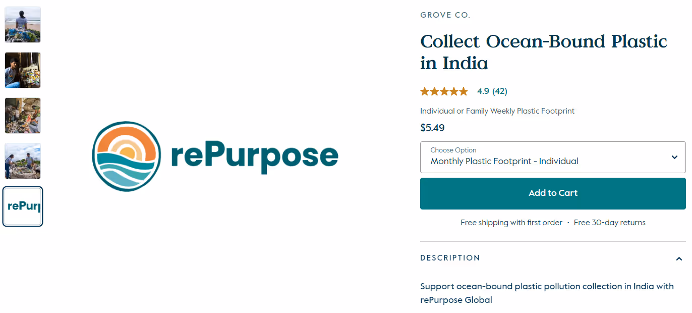 Plastic action from rePurpose Global is directly available to consumers via the Grove Collaborative store