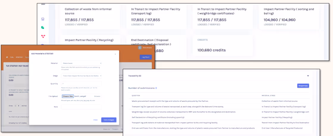 - Traceability: plastic recovery has a documented record of collection, transportation, and end of life treatment processes, with documents maintained and uploaded for audit availability.