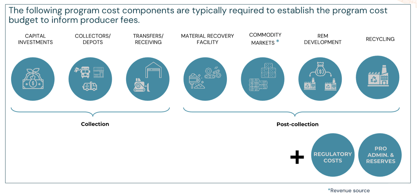 These costs fall into three major categories: collection, post-collection, and program administration & regulatory oversight.